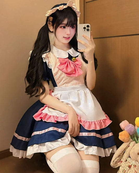 ชุดเมดแม่บ้าน ผ้ากันเปื้อนลายโลลิต้า (รุ่นสีน้ำเงิน)