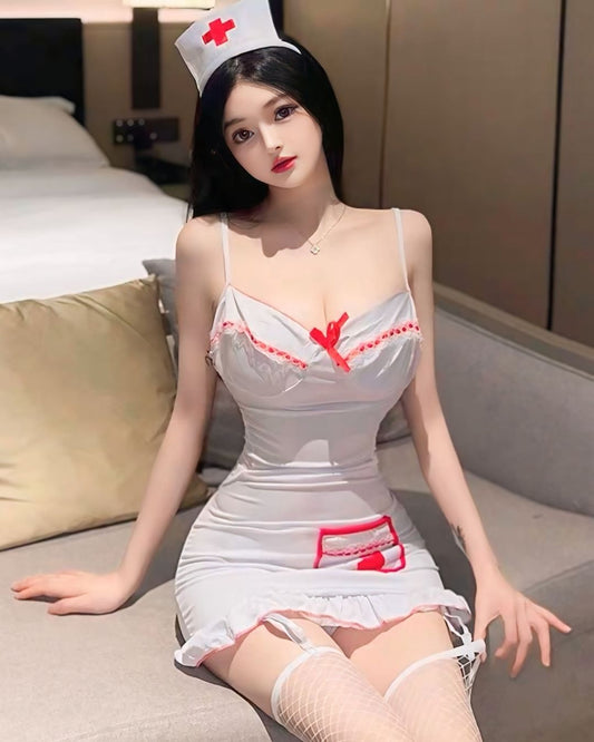 คอสเพลย์พยาบาล ชุดเดรสรัดรูปพร้อมที่คาดผม