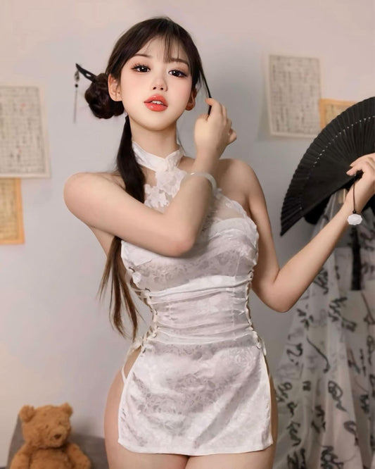 ชุดกี่เพ้างานคล้องคอสายไขว้ผูกข้าง สไตล์สุดหวานปนเซ็กซี่