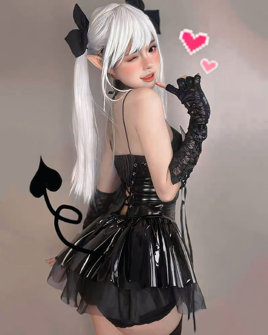 คอสเพลย์ชุดหนังติดปีกค้างคาว กระโปรงซีทรูพร้อมโช้คเกอร์